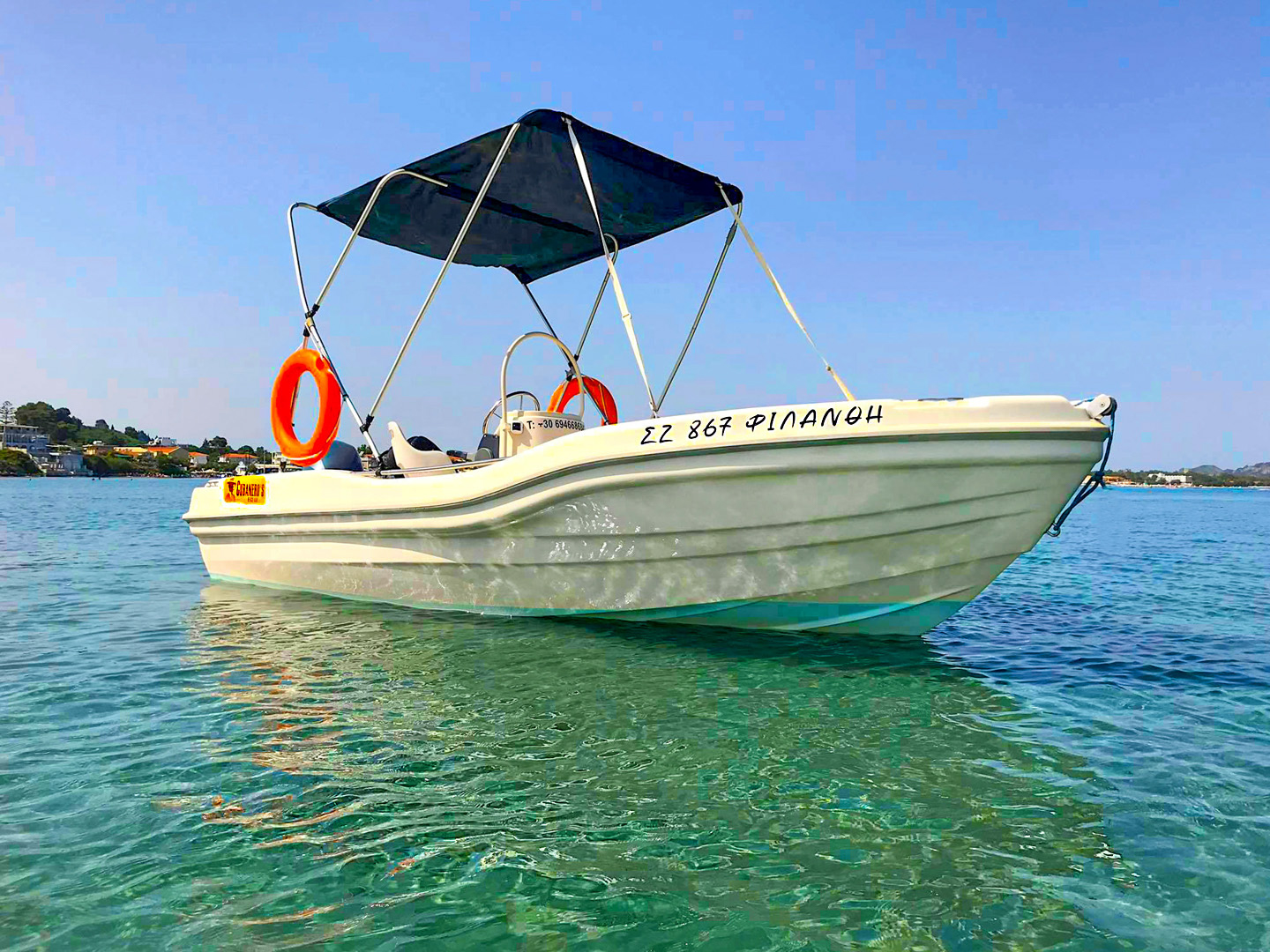 Choose between a full day or half-day speedboat hire. The boats come with detailed charts of the way which include directions of the caves at Turtle island and Keri Caves until Mizithres Rocks. There are over 15 private beaches to visit, a starting point in the area of Agios Sostis harbour, Cameo Island, Keri Caves, Maratihia up to Mizithres Rocks. You will have a chance to spot your own Caretta-Caretta sea turtle in the area of Laganas bay.